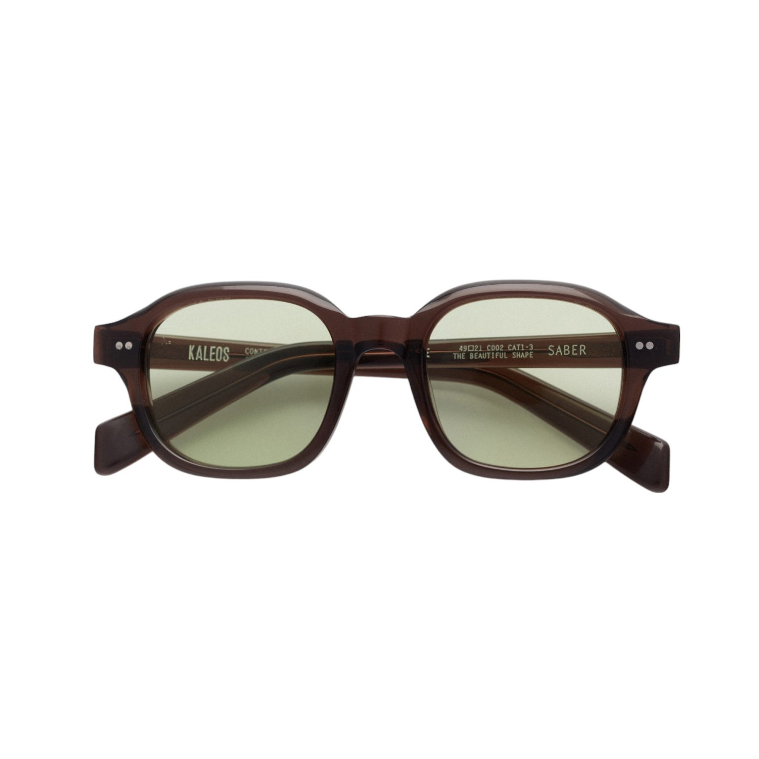 Füme asetat çerçevesi ve yeşil fotokromik camı ile KALEOS Saber hayatınıza tarz katacak.